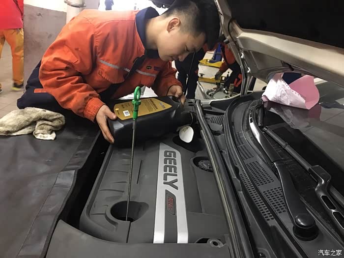 小师傅认真的给我加机油,给个赞(机油加3.5升左右,剩下的就没用了!)