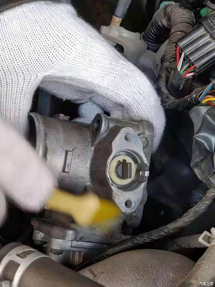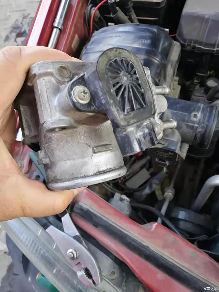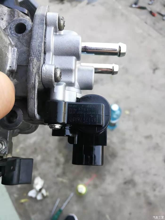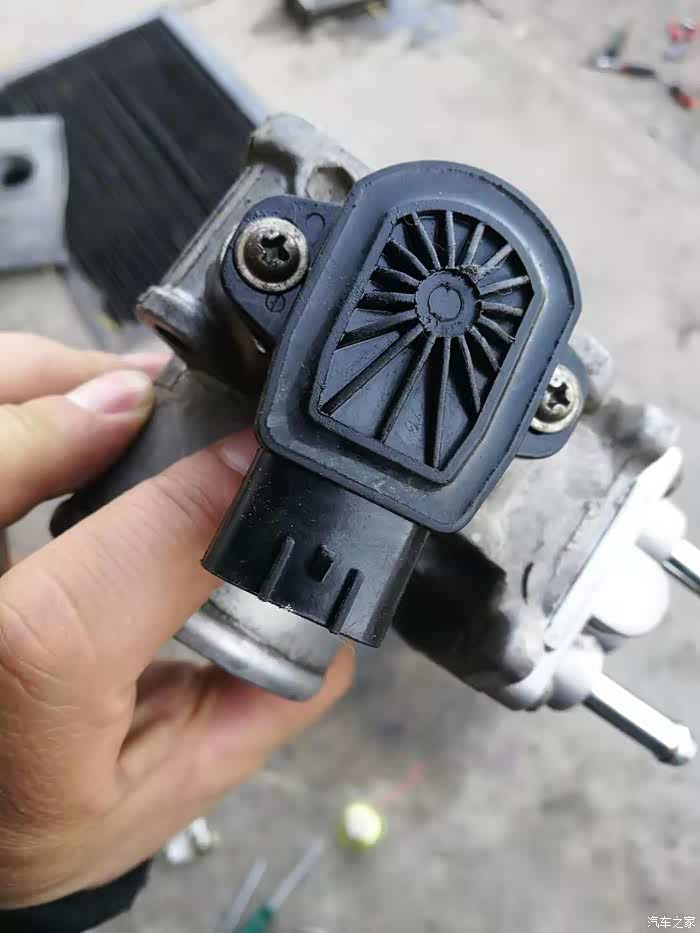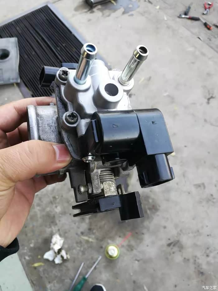 这是怠速马达和总成,前任车主应该清洗过怠速马达和总成,你看把螺丝拧成啥了,我们也费好半天劲才拧下来的。