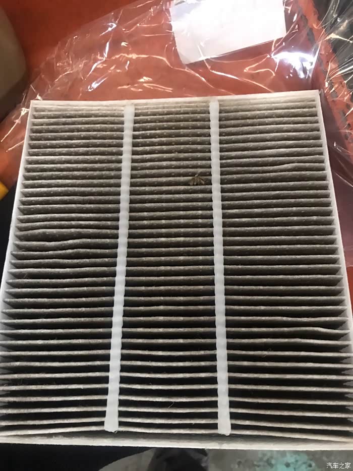 这是换下来的空调滤芯,和新的一比较还是很脏的。