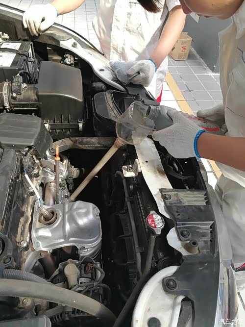 加注完后,清洗了缸体上的油污,比较专业。以上内容大家细细体会,我个人觉得我的变速箱油更换加注的量比原厂的少,但是比4S开观察螺丝后的量高,处于中间水平。下次决定3万再保养变速箱,坚决放多少,都加3.9。