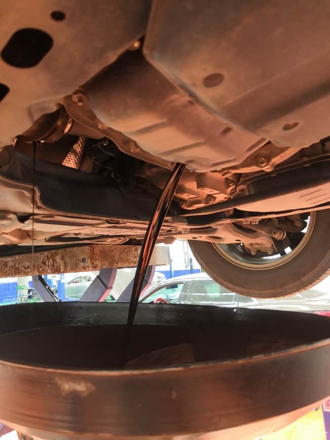 放出来的油跑了8000多公里,也挺黑的了,也是原厂纯牌机油!就是没有我这次自带的标号高!