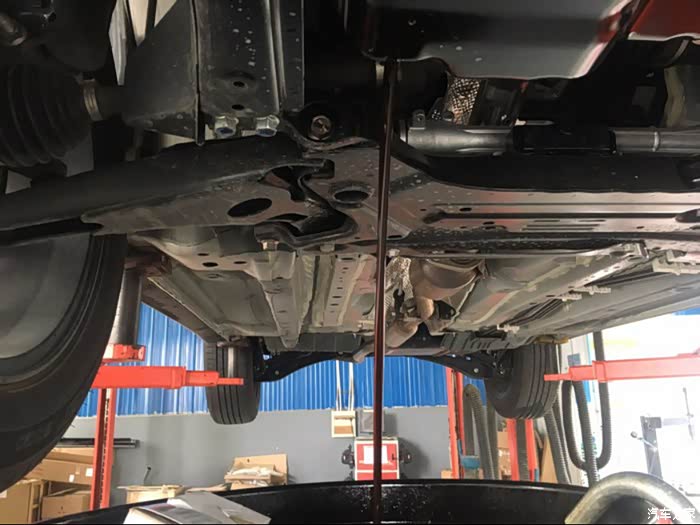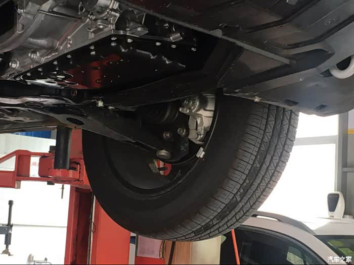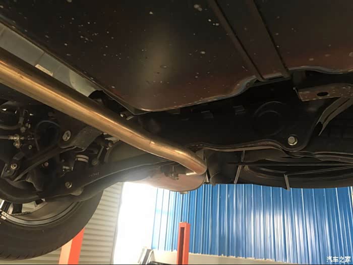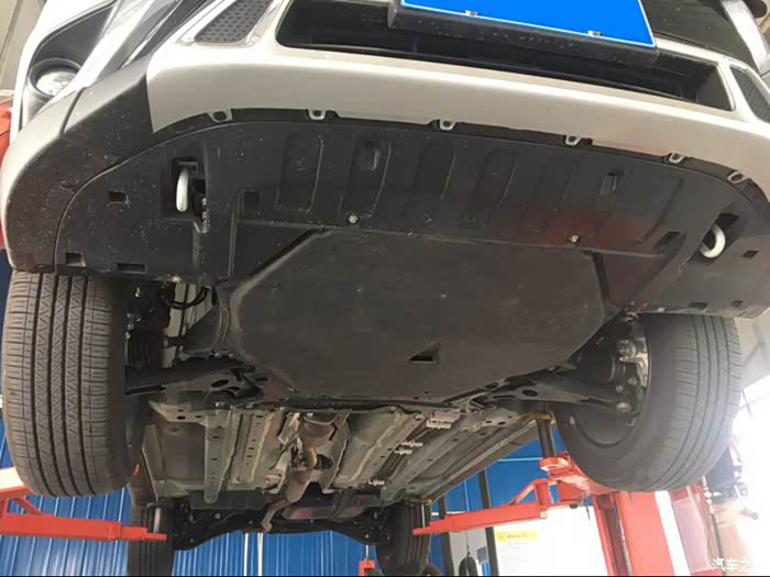 第一次看见小欧的底盘,新车提车的时候并没有特意升起来看。比我想象的要规整很多,简单明了,发动机护板也很平整。