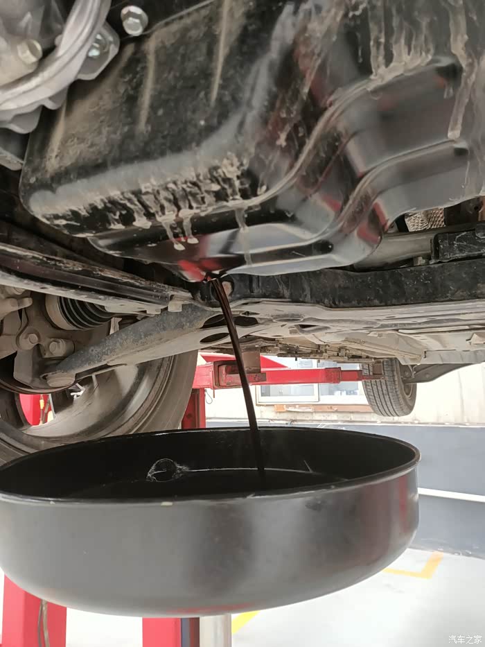 看看新加进去的机油的颜色,黄色的透明的,再对比一下刚才放出来的机油颜色乌黑乌黑的,可见机油的重要性。无论是矿物质油还是全合成机油,只要是正规厂家的合格机油都没有问题,最怕加到假的机油,那对发动机的损害可是无法估量。
