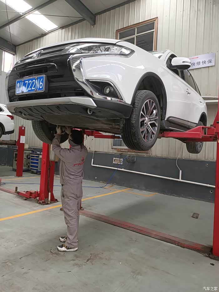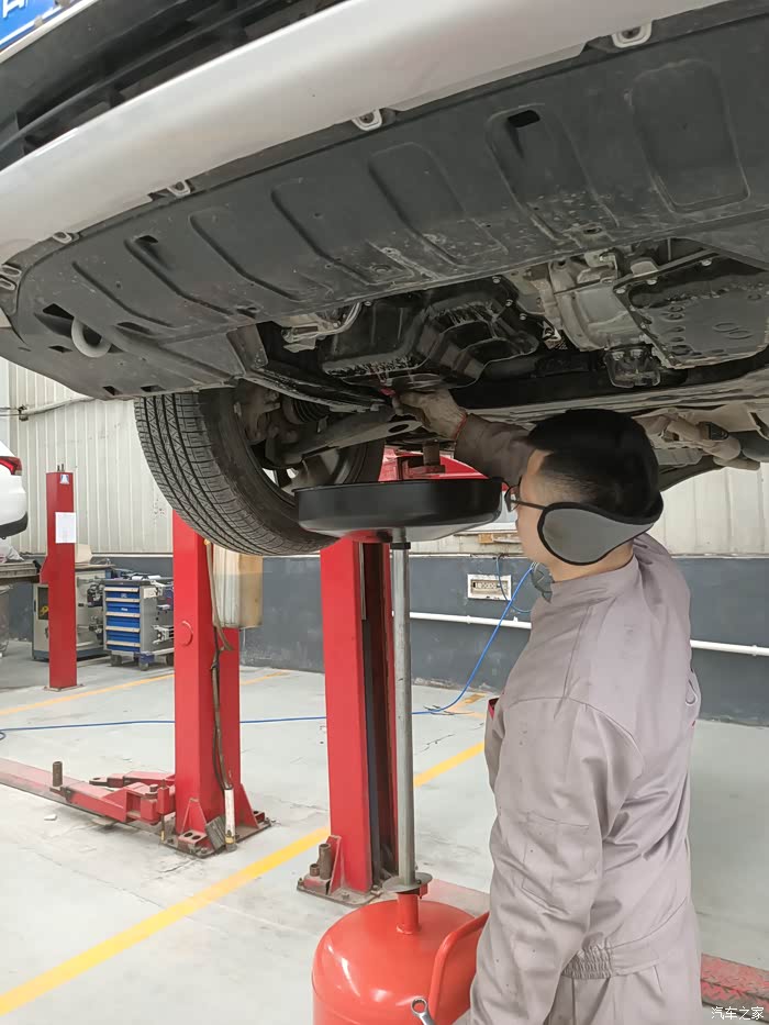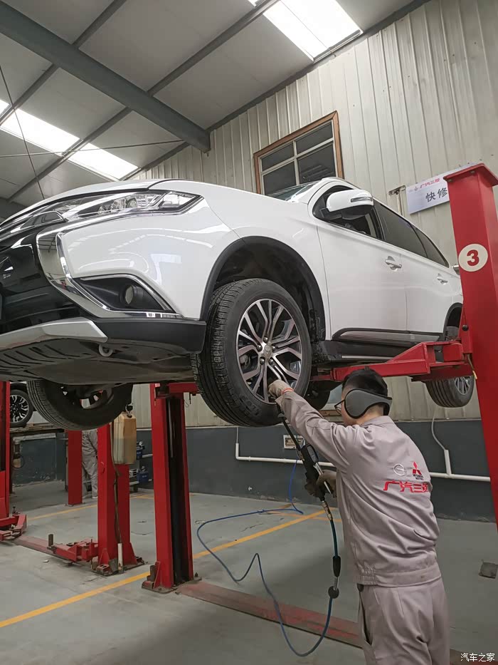 一点半左右到了店里,保养的车不多,前面只有两辆车,售后服务的小哥热情的迎接大白回娘家。登记之后便安排大白开到了售后保养车间,负责给大白保养的小哥准确无误的将大白开上了升降机。大白的第四次保养正式开始!