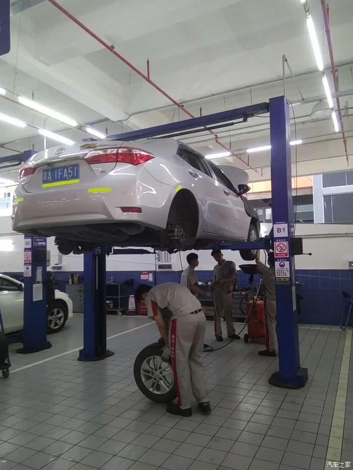 中午13:30分阿龙给我电话让我进去观摩我的爱车保养过程。轮胎前后四轮换位。