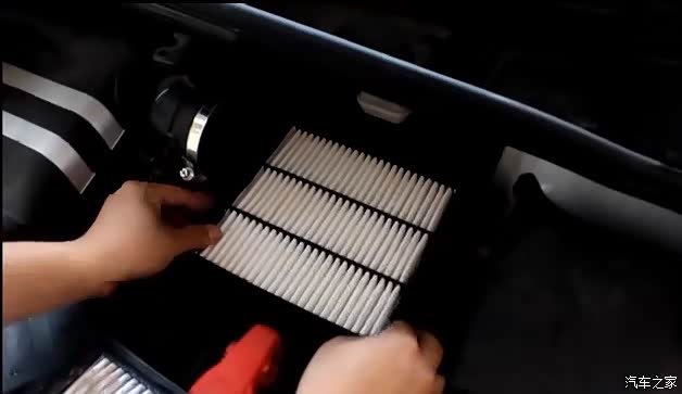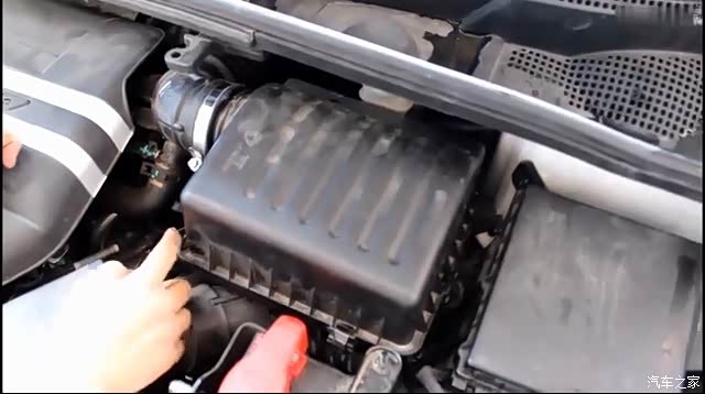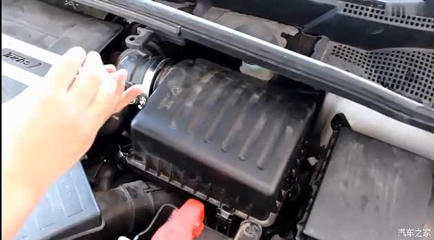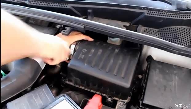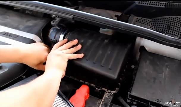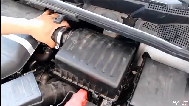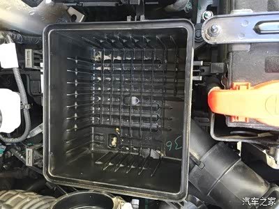 拆掉盖板,就看见这个装着空气滤芯的黑盒子了
