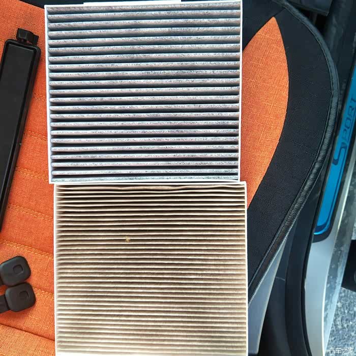 这两个滤芯看似简单却是汽车的两个重要部件,虽然都是用来过滤空气的,但前者过滤进入发动机空气保护发动机,后者则可以过滤进入驾驶室的空气保护乘坐人员,这两个滤芯看着简单却作用。 4000多公里做的首保,当时打开看了下不是很脏,吹了吹就装回去了,现在是趁着换季的时候,再某宝买了两个滤芯自己动手更换一下