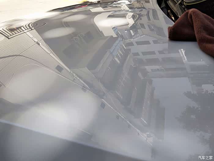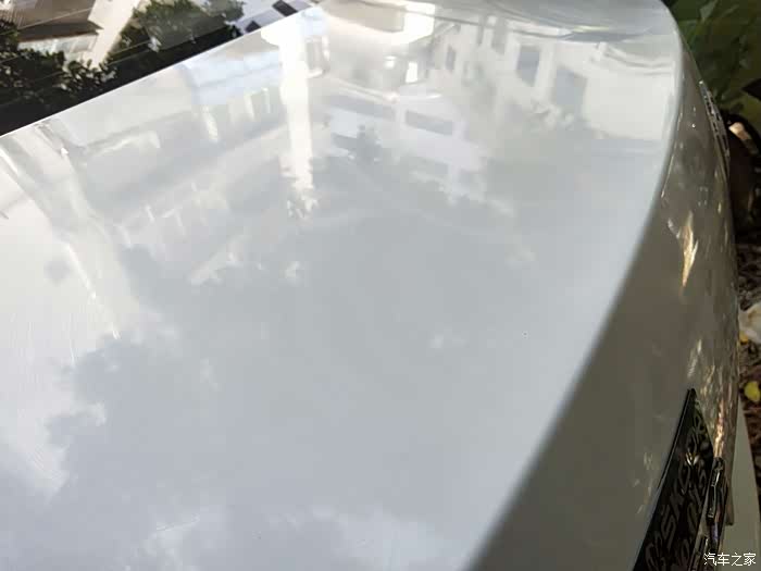 趁着阳光嗮过来之前,开始抛光。这是引擎盖抛光后的效果。