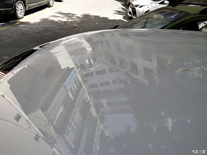 首先把引擎盖打蜡,看出鱼鳞斑了吗?等蜡干了,就很明显了。