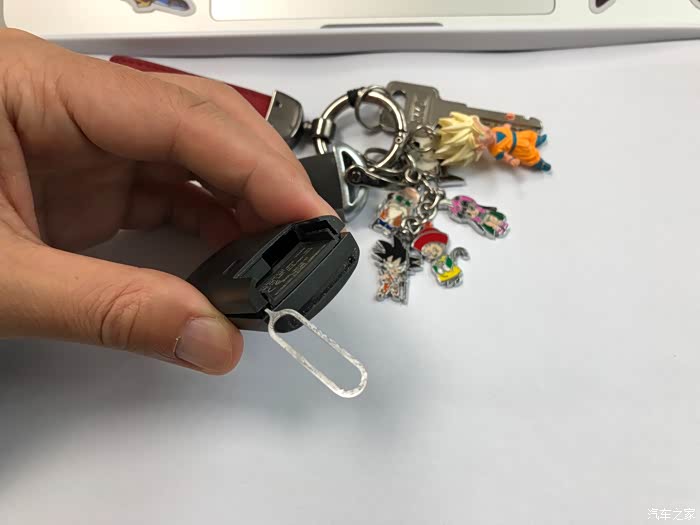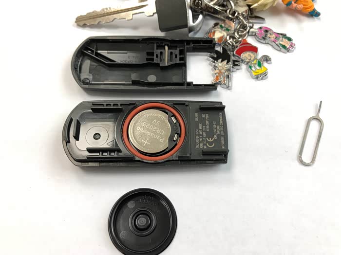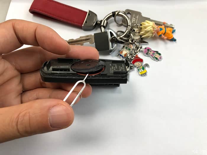 直到把钥匙完全分开两半,就能看到钥匙里的纽扣电池了。