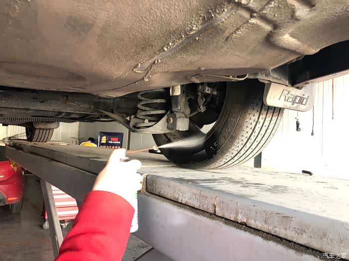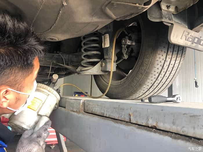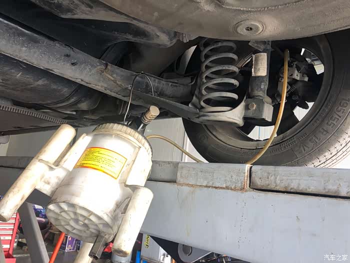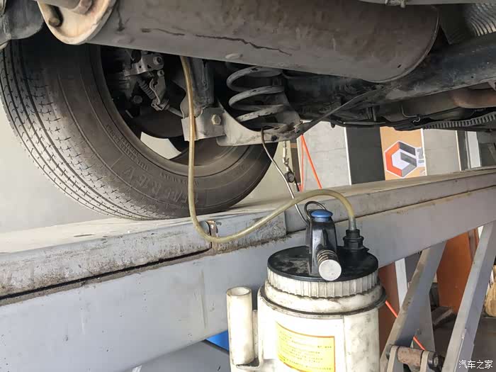 我的爱车开到架子上,准备放油。