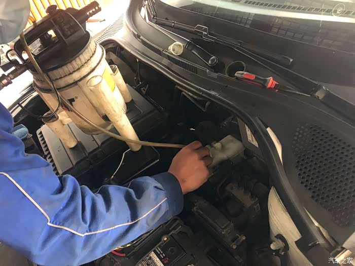把刹车油加注口的滤芯拿出来准备吸掉残余旧油。
