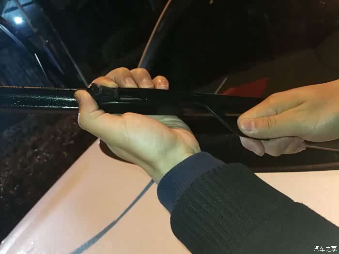这样两边的雨刮胶条就更换完成啦,接下来就要装回原车啦,安装的位置别装错了,长的装司机侧,短的装乘客侧。