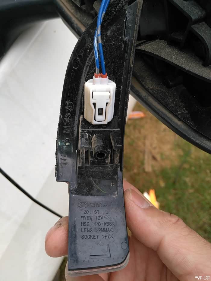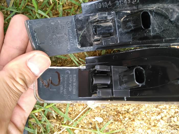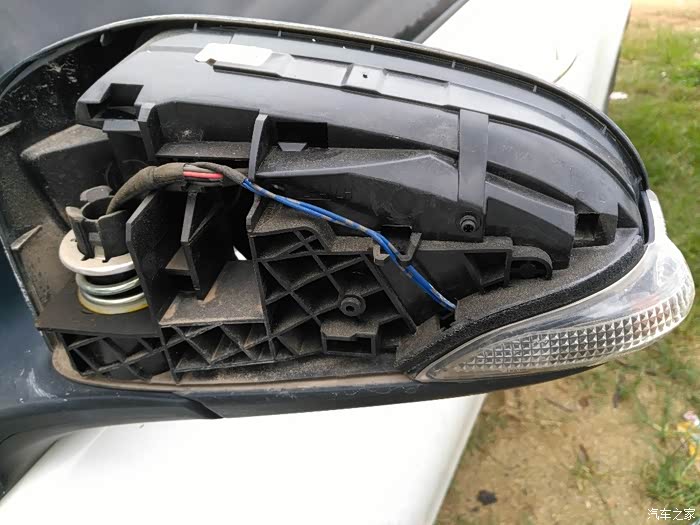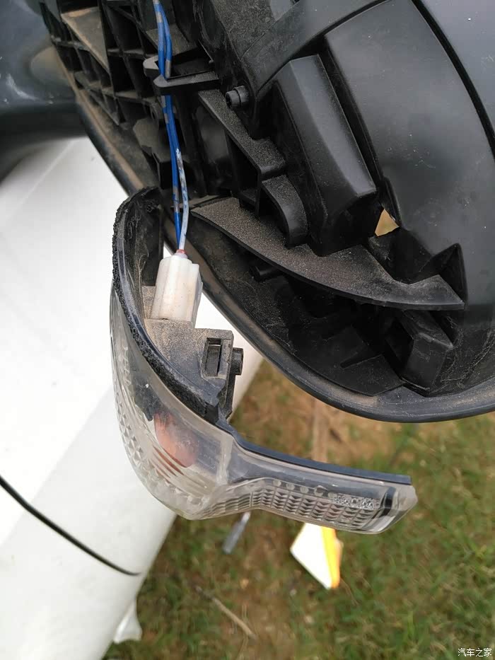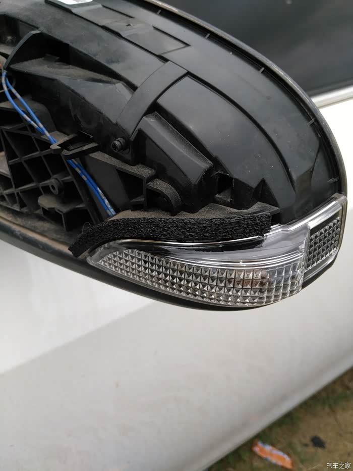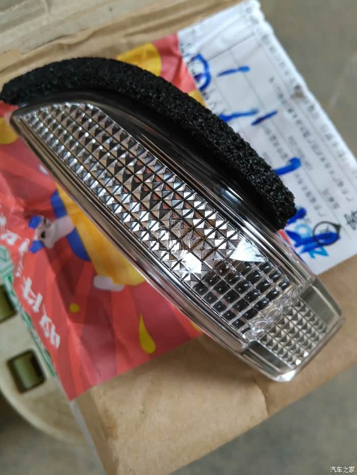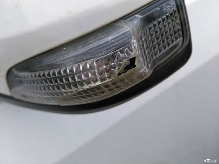 在一次入库不小心刮到后视镜,呯的一声以为整个报废了,下车一看还好没大碍,只不过转向灯罩刮破了,去保养4s说换一个要八九十,没换,后来一直忽略,下雨进水,不过还能用,闲着没事,去某宝淘了一个,17块的山寨版