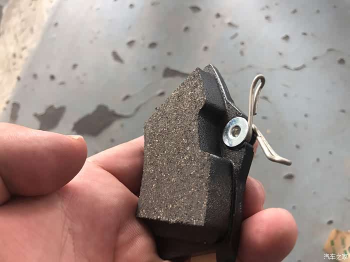 看一下刹车皮的厚度,马上要磨到底了,还好发现的早。