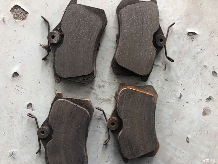 看一下换下来的刹车片,是不是非常薄?很后怕............