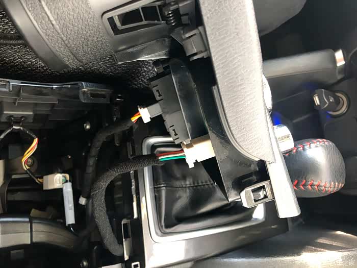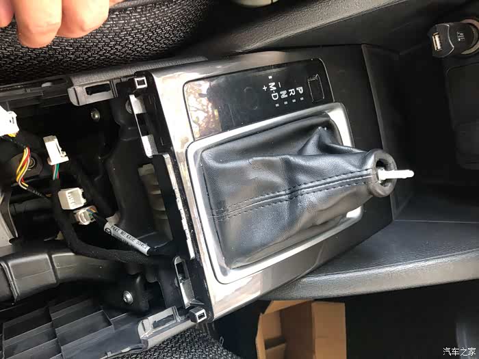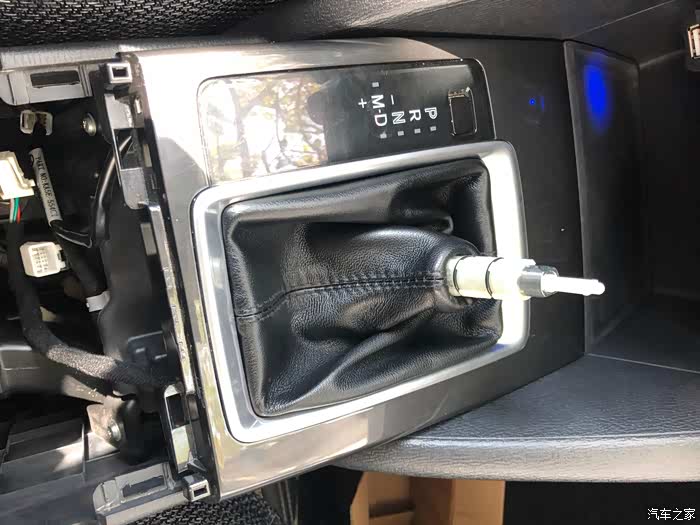 然后是拆下档把,把档位挂到D挡,关闭车辆电源,塑料翘板,从图片这位置往上翘,我这个是拆下来以后拍的照片