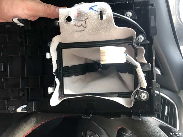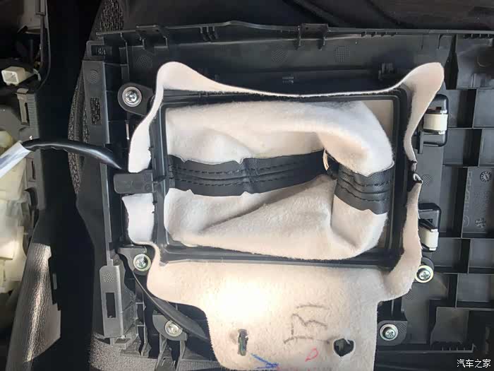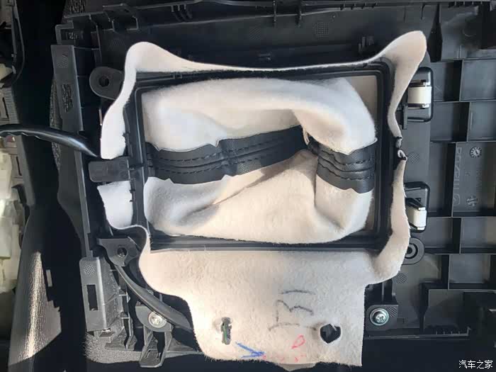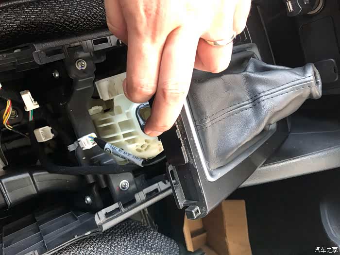 水杯架拆下来有两个插头要拿掉 ,一个是电子手刹 一个是我后加的B钮