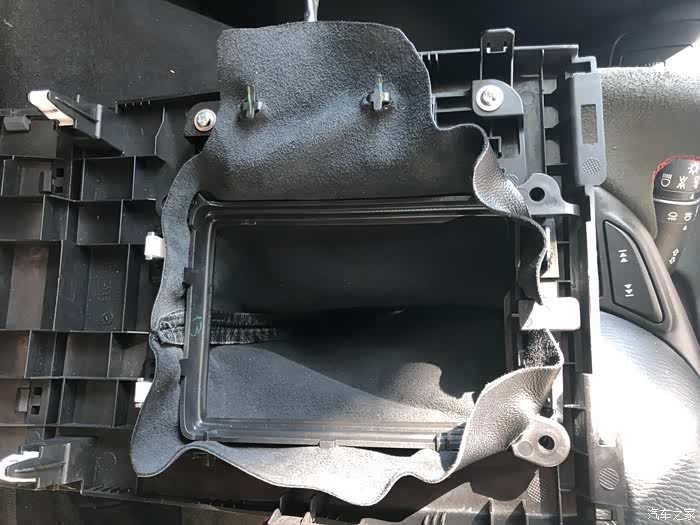拿下换挡面板先要拔下面板灯插头 ,也是需要用力往上提,需要一个巧劲 ,这个面板是和前储物格胶垫一体的