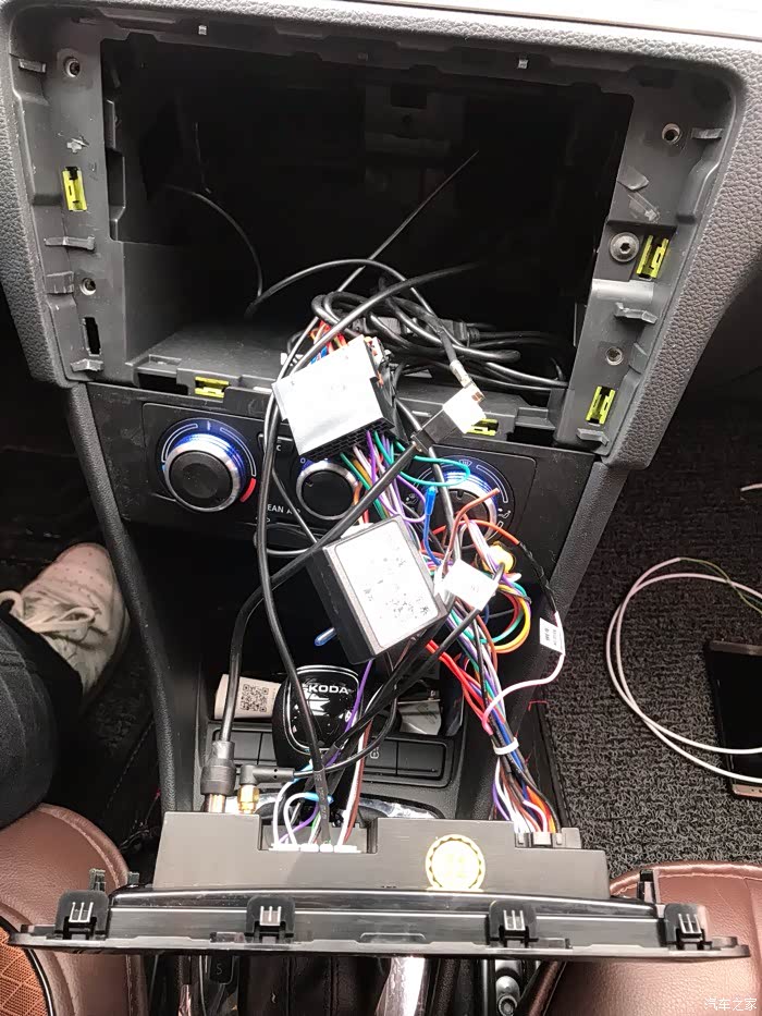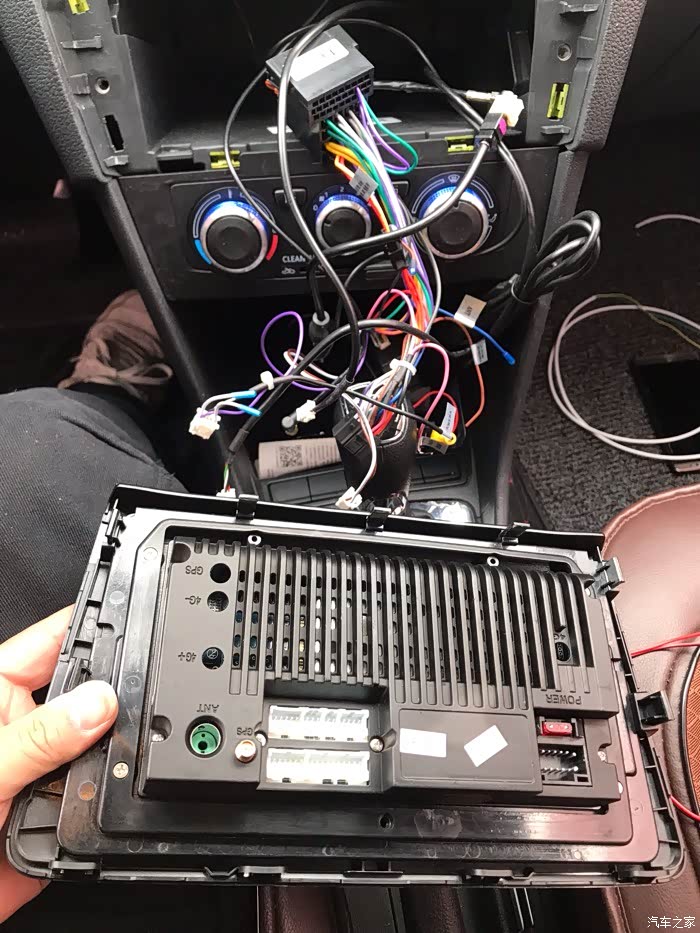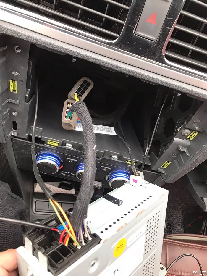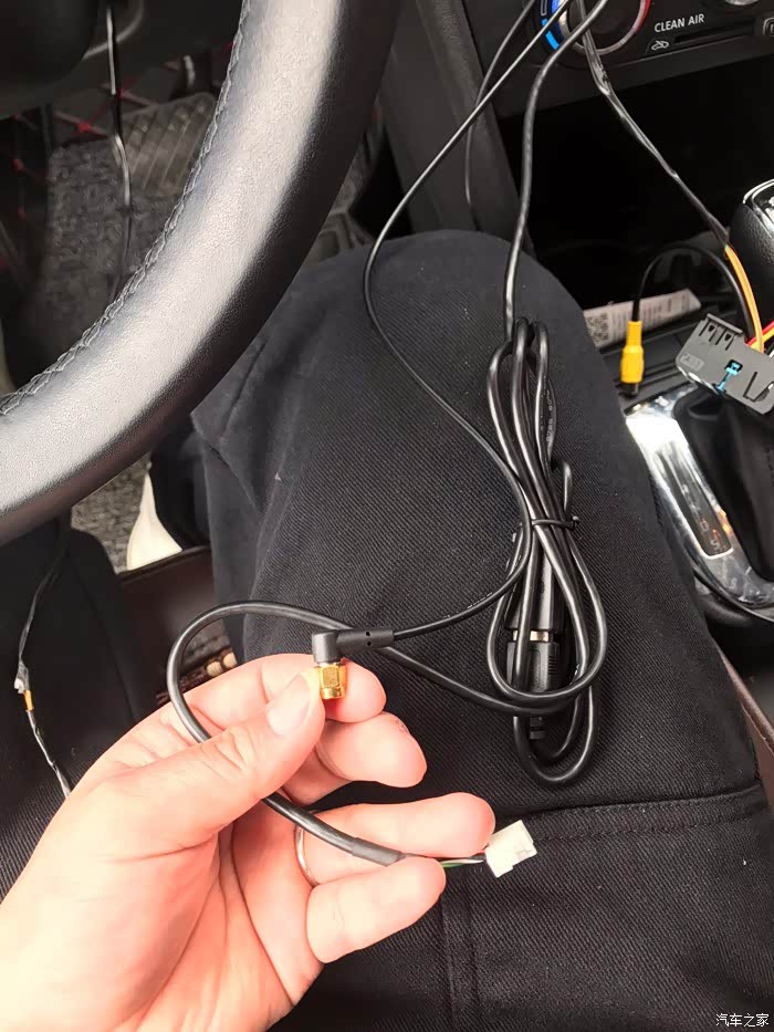 这是还没有清理完的线 左边的安卓大屏的行车记录仪 右边是 汽车的天线接口