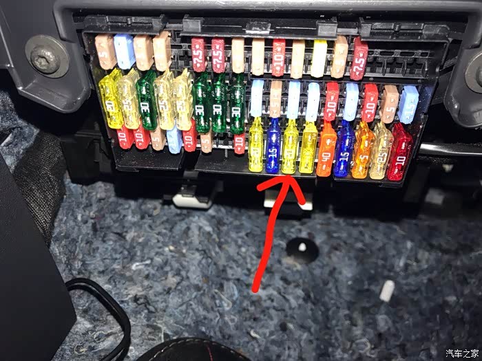 红色箭头指的就是点烟器的保险丝