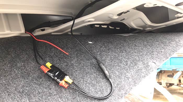 这跟红色给摄像头 从点烟器的保险丝出取电