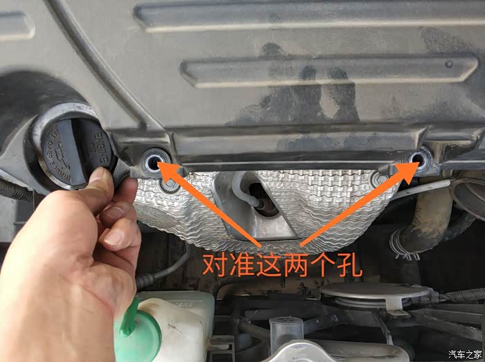 并且对准这两个后洞洞,拧紧螺丝,最后拧紧发动机右侧的进气喉的卡箍。就是上图的那个卡箍螺丝。