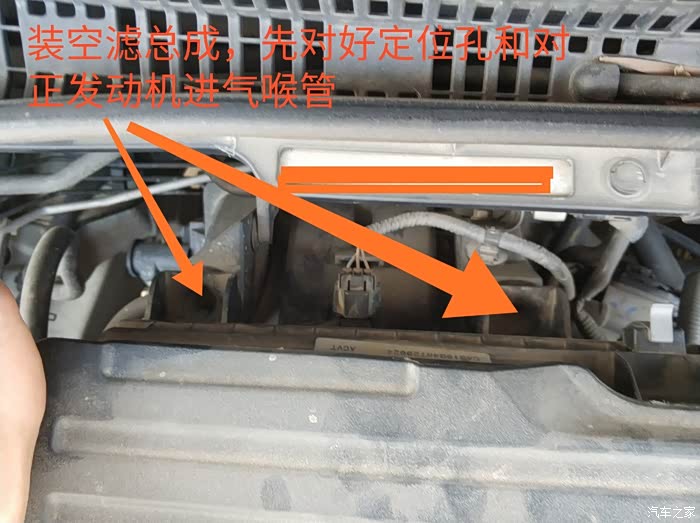 安装空气滤总的时候,五个点,分别是雨刮器前的两个孔(没有螺丝的,直接卡进去定位)