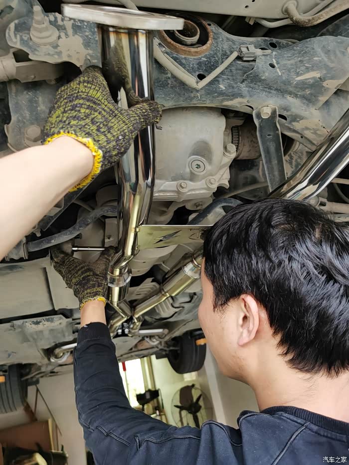 表哥坚持要把原车排气分段拆除,方便等会儿放入ATOZ那个箱子里面保存,很细心。