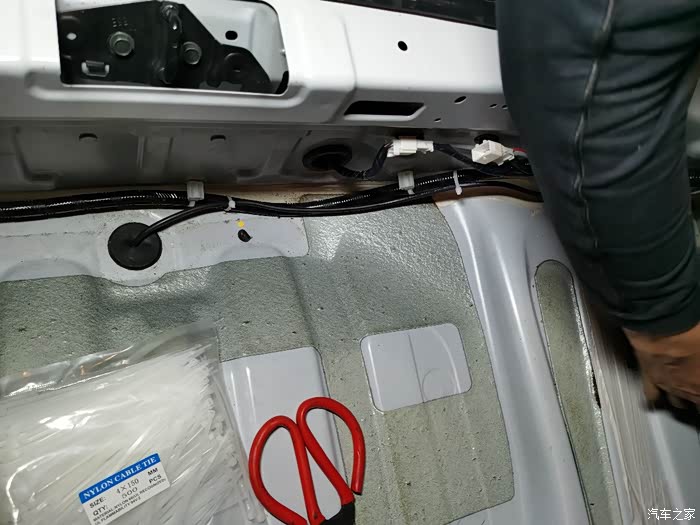 线路接的非常好,走底下有个塑料洞挖了个小孔穿线,然后上来把扎带弄好,红色的线接后保那边一条,测试需要车子接电阀门才可以进行开关,避免熄火漏电好像。