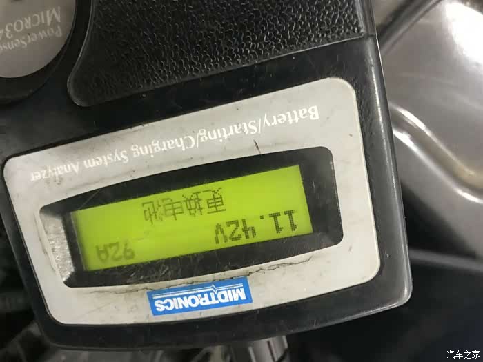 检测电压低于12V,电流92A,自搭电启动行驶了一个多小时,一点充电的效果也没有,宣告电瓶寿终。