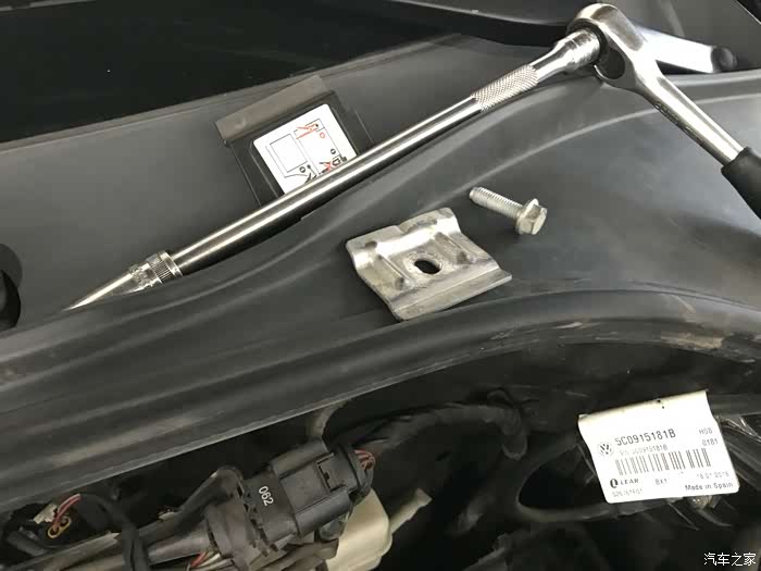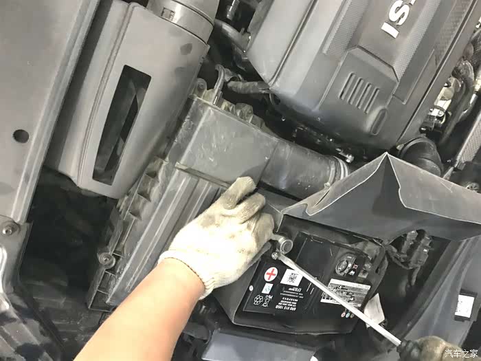 将新电瓶安装归位,不能忘记下面的固定装置,电瓶这玩意看着不大,但是重量还是非常重的。