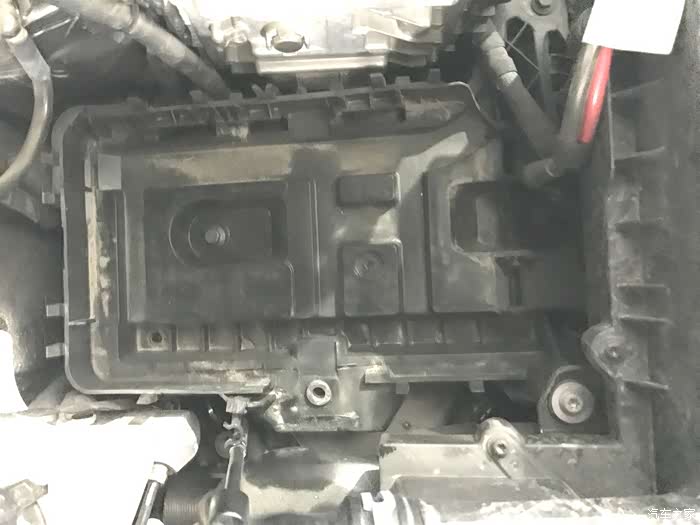 发动机舱真的是处处藏污纳垢,平时电池盒盖虽然盖着的,但看上去还是非常地脏。