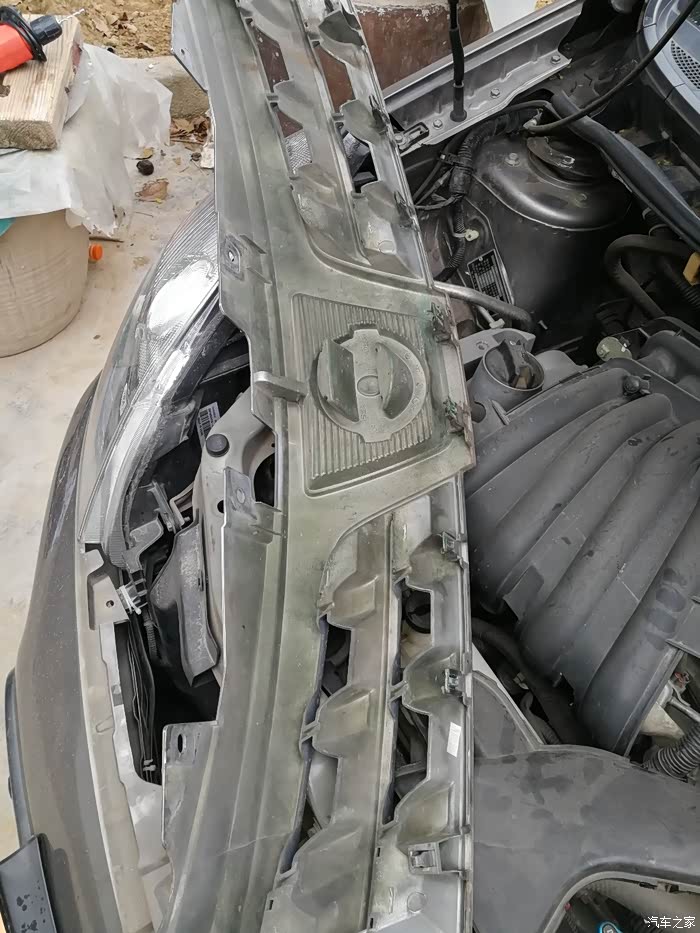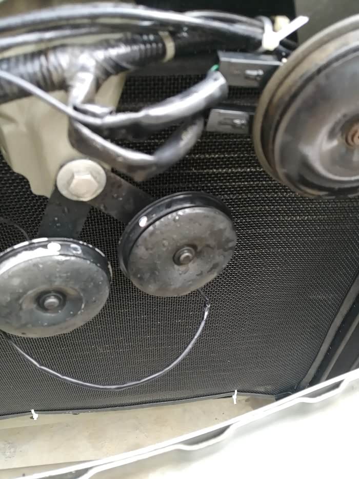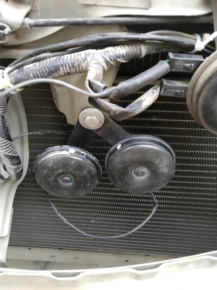 前段时间就看到车上的水箱防护网右下角破了(生锈),于是前段时间就网购一个防护网。原车鸣笛喇叭也太次(还没我的电动车喇叭响,换的蜗牛喇叭)。开始今天的作业。