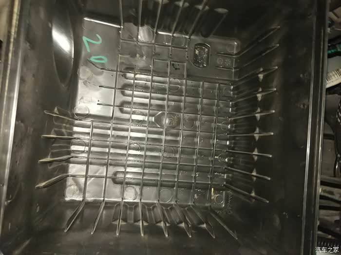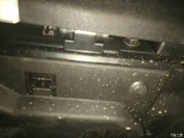 盖板卸载下来后,储物盒下面有两个固定的插销,把这两个抽出来就能发下来了