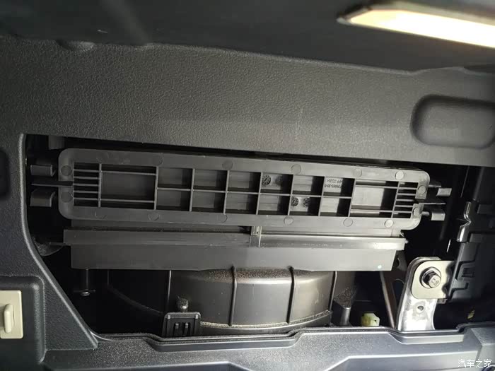挡板取完卡扣手套箱打到最大就可以看到空调滤芯的挡板了