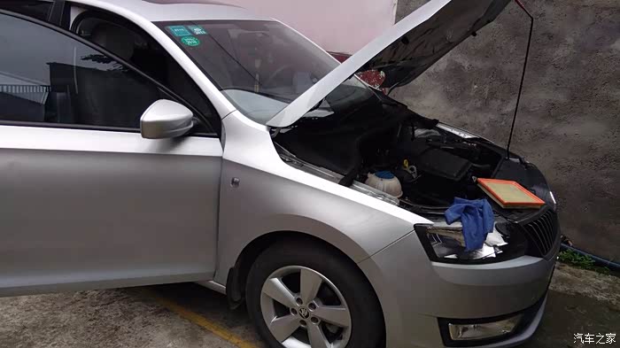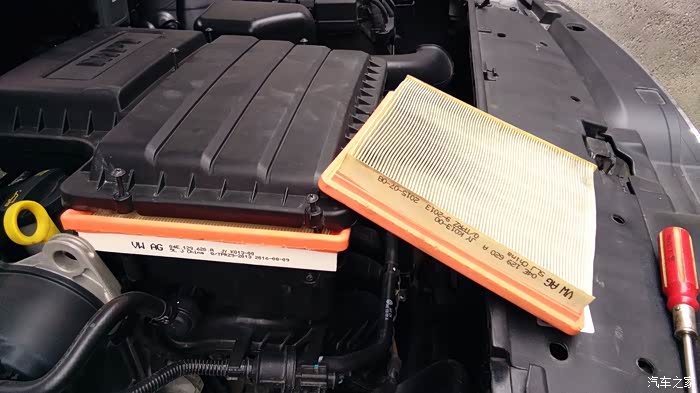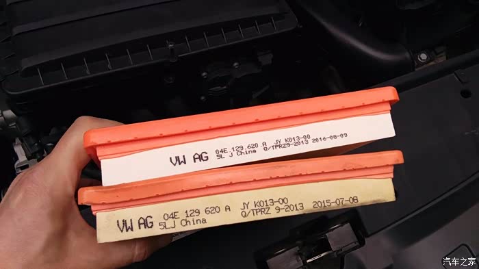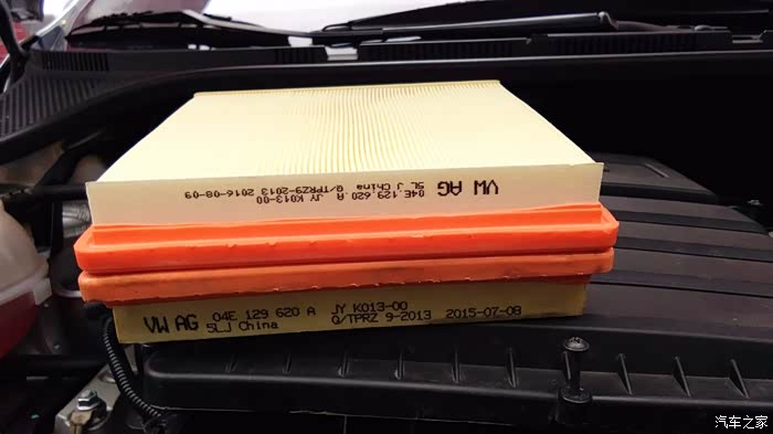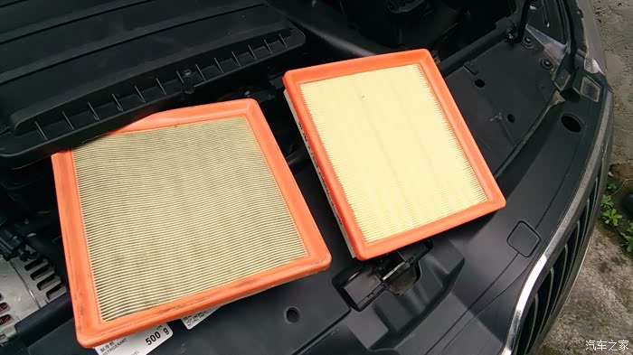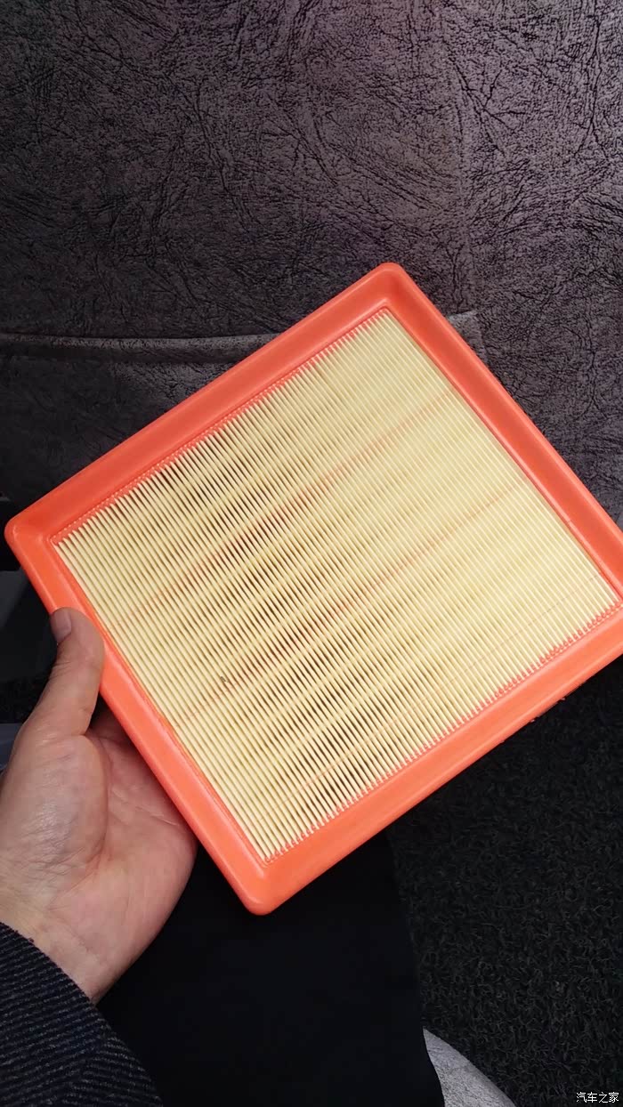 今年三月份,我的车车满三年,刚出质保期。前两次在4S店保养时,不知道是他们为了考虑我的费用问题还是什么的,每次去都没有换空滤而只是拿高压枪吹吹,不过也还像干净的样子,只是稍微有点变色。他们说能用就尽量用吧,我本来想换的,听他们这样一说,也不好再说什么。但我也暗下了决心,只要一出质保期,我会自己换的。