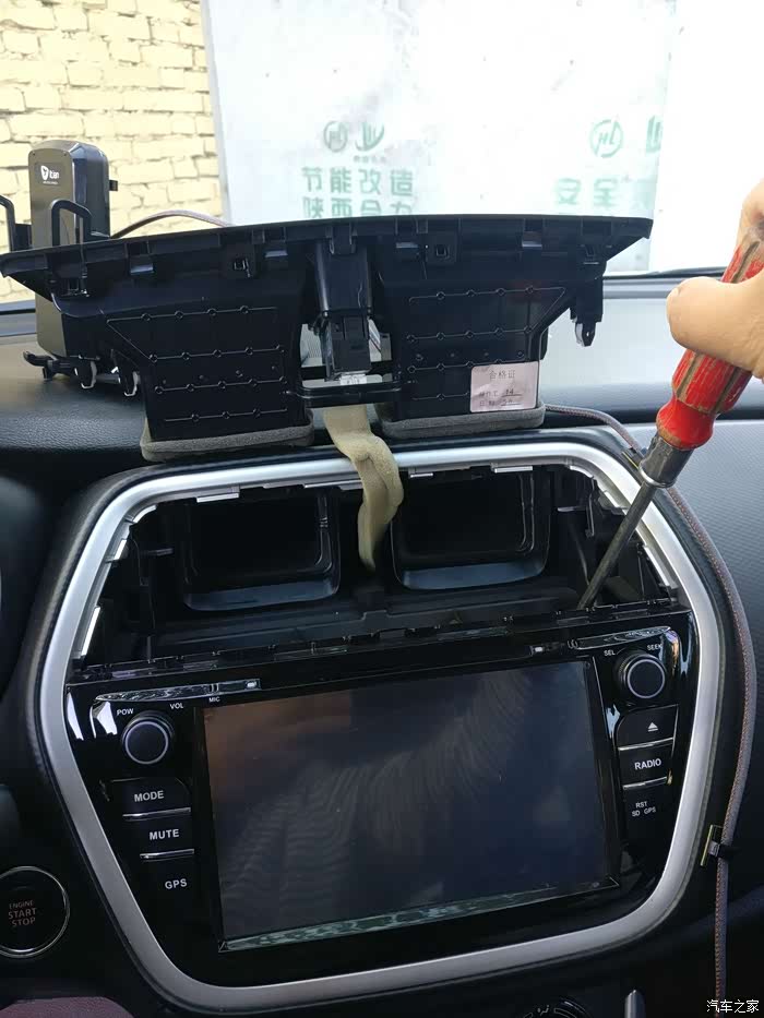 卸掉两个固定导航的螺丝