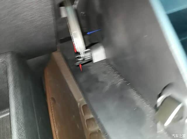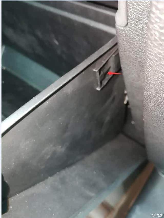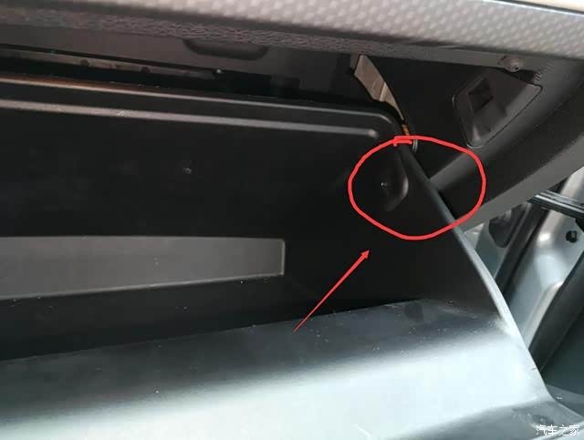 打开手套箱,如图上的那个扣子,拆下来。这是手套箱左边的。