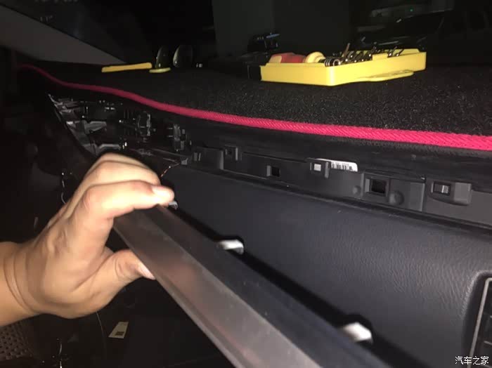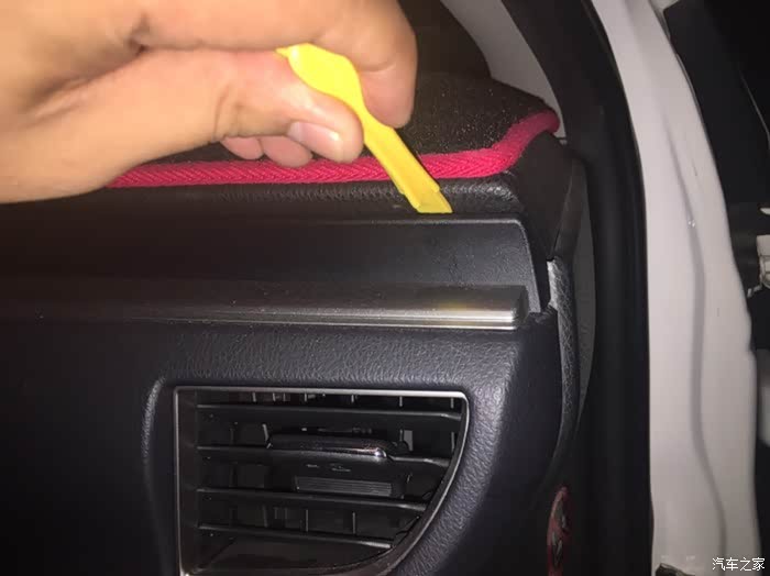 开始拆装饰条,从这个边开始向左一点一点翘,掌握好力度,毕竟车是自己的
