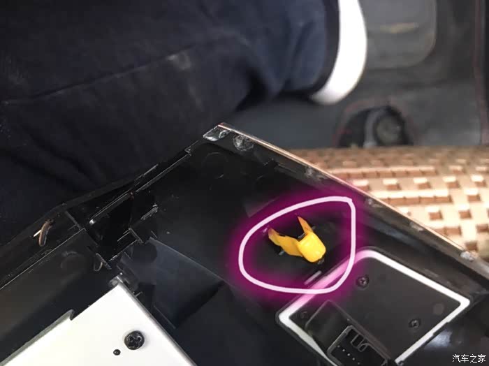 装的时候按了几回按不回去,一检查发现这装饰板坑啊,没卡扣!画圈的地方应该有个卡扣才对。