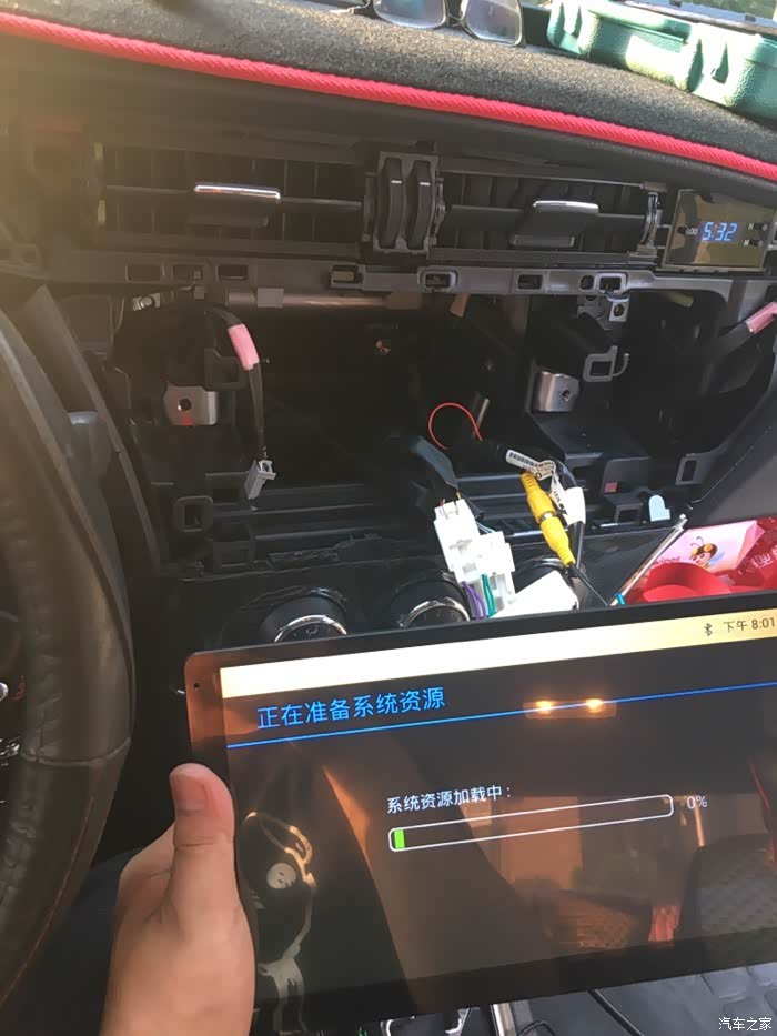 然后测试倒车影像的时候,倒车摄像头没反应。检查接线时发现倒车检测的线没有连上。就是上面提到的车里的红色细线和车机上的绿色细线连接到一起就行了。当时实在腾不出手来了,所以没拍照。安装的时候最好有个帮手,一个人有时候真的比较麻烦。