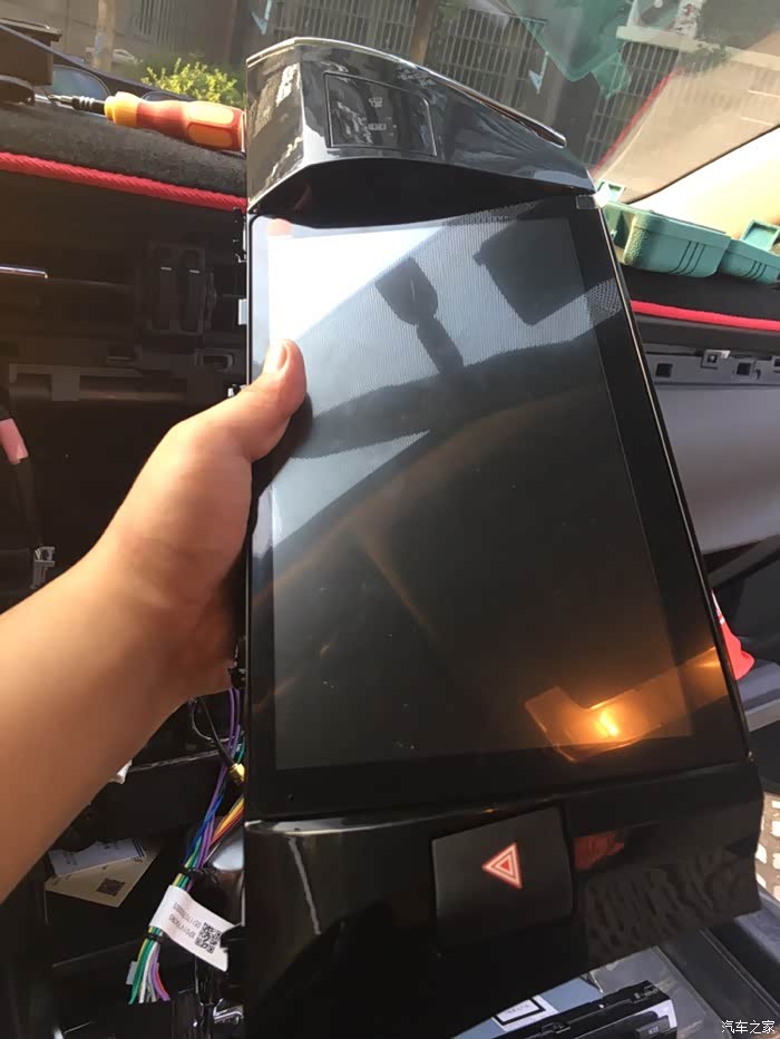 测试完发现这个车机是固定在装饰框上的,没办法,又把插头都拔掉,拔车机和装饰框用螺丝固定好。