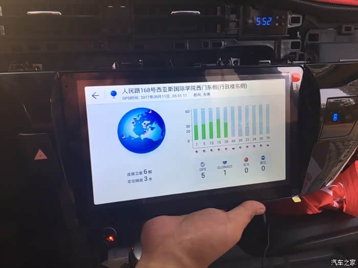 后来上路的时候又试了试,一切正常,搜星也没问题,自带高德地图支持连Wi-Fi情况下显示实时路况,可以自己下载软件,系统是安卓4.4.2的。个人建议最好按个多功能方向盘,因为这大屏是全触屏,操作时候必须看屏幕,有安全隐患,要不是钱包羞涩,我早就把方向盘换了。