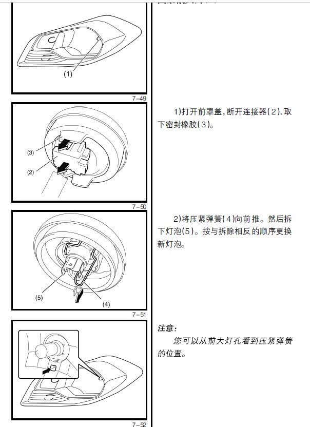 先看一下这个表格,大灯H4插头,W5W与W8W是同一种插头,就是T10。倒车灯是T20灯头,转向是py21W,由于我的是进取版。。少了一部分灯光,所以比较轻松