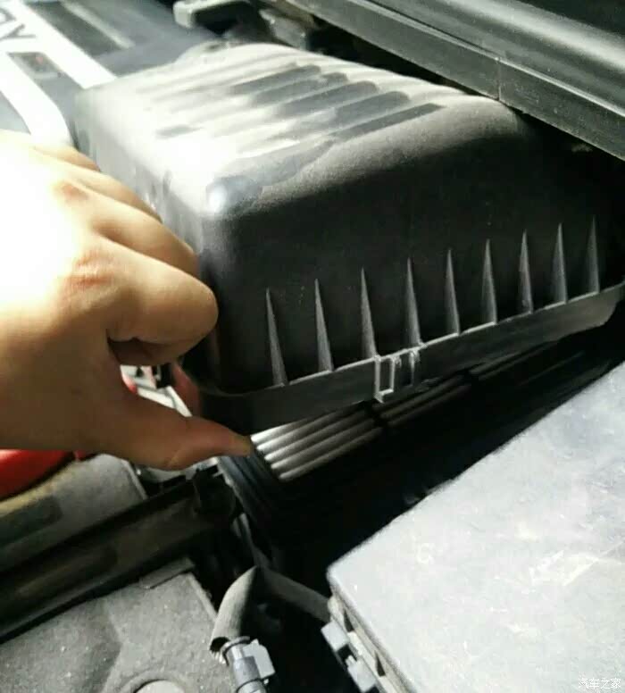 这个黑盒子里就是空气格,把卡扣掰开就可以打开了。