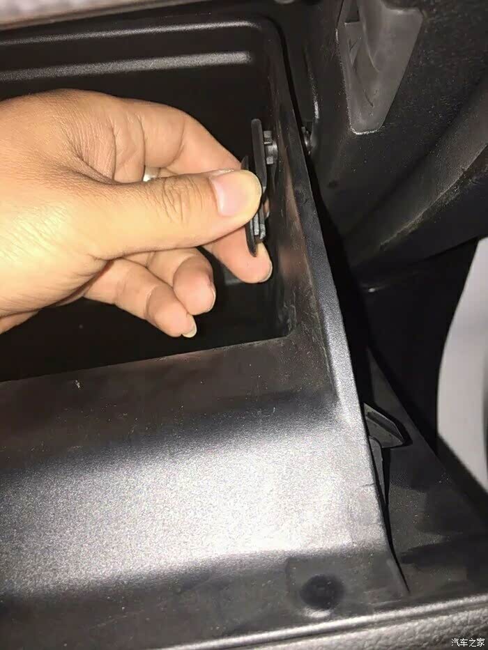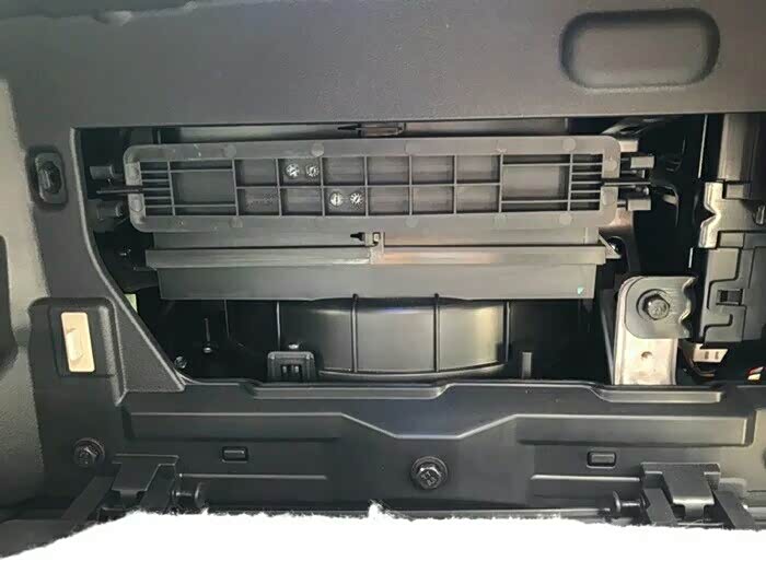 接下来更换空调滤芯,空调滤芯在储物箱的后面!需要把储物箱拆下来,同样很简单。