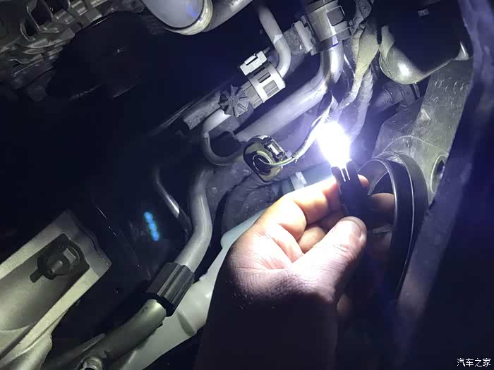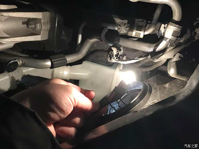 拔掉途中这个橡胶圈,这个位置是大灯的后方
