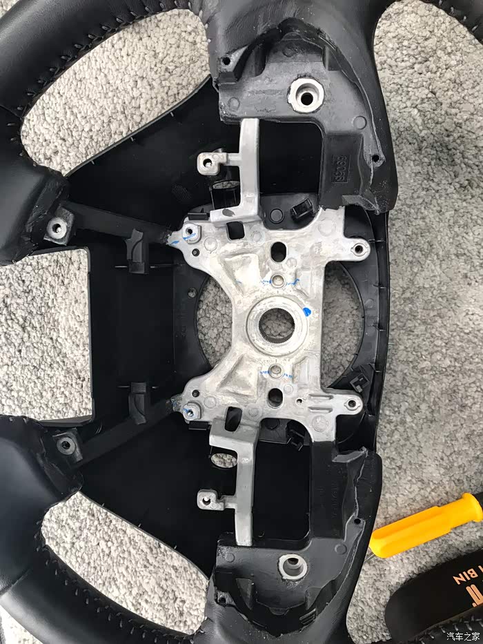 拆气囊需要用到T30花键扳手,参照拆解位置,左右各有一个螺丝拆掉