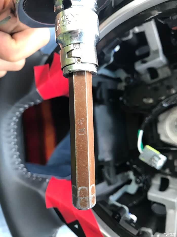 这是拆方向盘柱上的大螺丝!内6角10号,这个一定要用对扳手,小一点拧滑丝,可不是闹着玩的